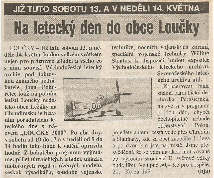 Klub organizoval letecký den pod názvem Loučky 2000.