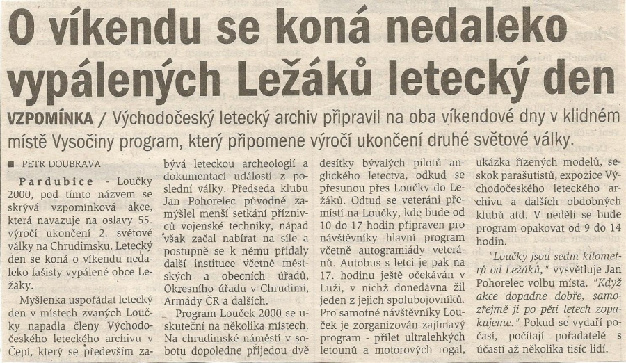 Klub organizoval letecký den pod názvem Loučky 2000.