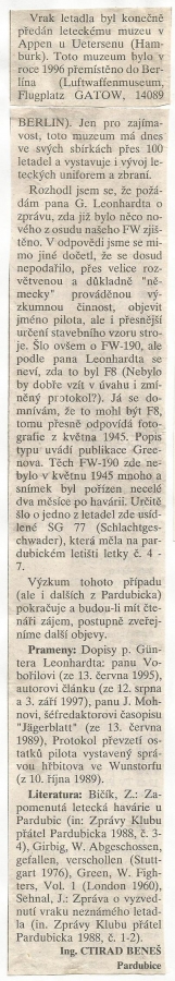 Focke-Wulf Fw-190 (1944) Polabiny:Nálezy a činnost klubu