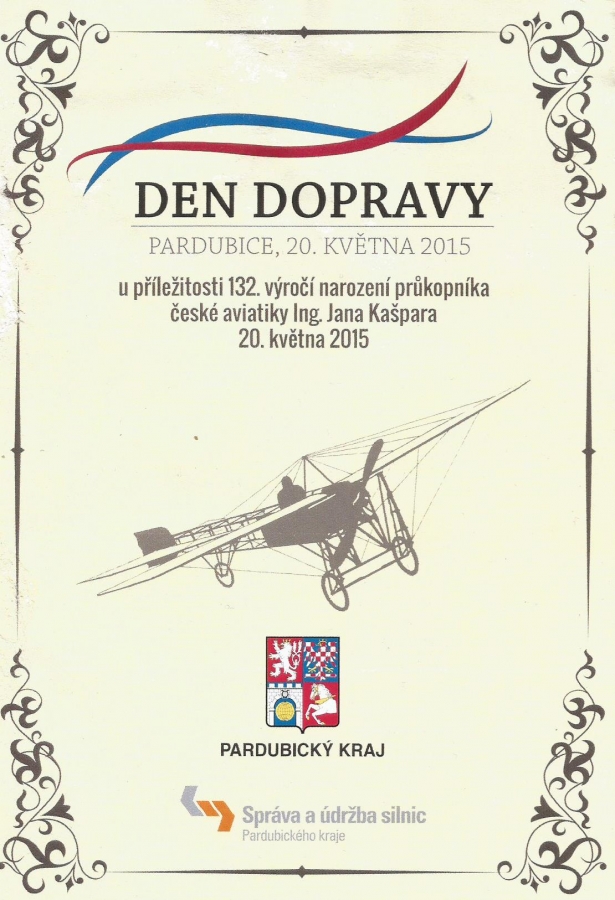 Dne 20.5.2015 byl v Pardubicích Den dopravy - u příležitosti 132. výročí narození průkopníka české aviatiky Ing. Jana Kašpara. V expozici muzea bylo umístěno několik nových vitrín s exponáty, které se nám podařilo nalézt a artefakty byli doplněny modely letadel.